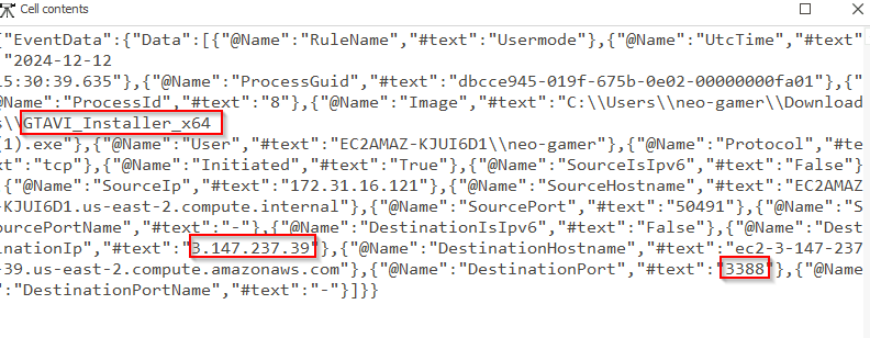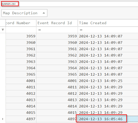 &"C:\Users\Administrator\Desktop\Start Here\Tools\ZimmermanTools\net6\EvtxeCmd\EvtxECmd.exe" -f "C:\Users\Administrator\Desktop\Start Here\Artifacts\KAPE_out\C\Windows\System32\winevt\logs\Microsoft-Windows-Sysmon%4Operational.evtx" --csv C:\Users\Administrator\Desktop\ --csvf sysmon.csv