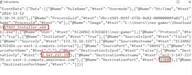 So we know the name of the malware, we have Sysmon which records network connections by programs. Lets look for the malicious process and any connections it made. Remember this will not be under the Process Creation Event, it will be under the Network Connection event.