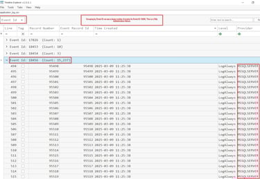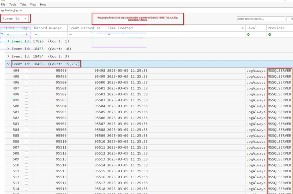 Generate a CSV with EvtxECmd and the Application log which houses the SQL logs.
