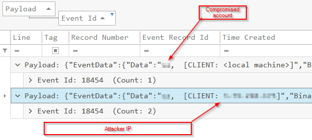 This information will again be found under the application log we parsed earlier. Look under the below events.